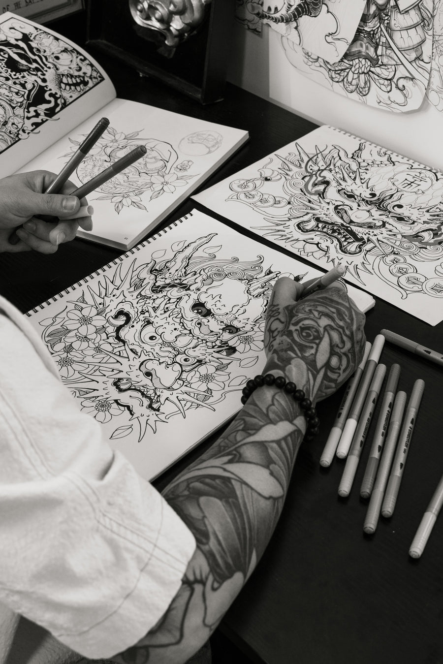 Bon Bon's mastery in Oriental black work is more than an artform; it's a celebration of diverse Asian traditions. His designs blend elements from various Asian cultures, bringing to life the depth and beauty of these ancient stories. This journey in tattoo art has blossomed into a distinctive style that's not just visually stunning but also a powerful medium for cultural storytelling. It's where tradition meets modernity, and every design speaks a thousand words.